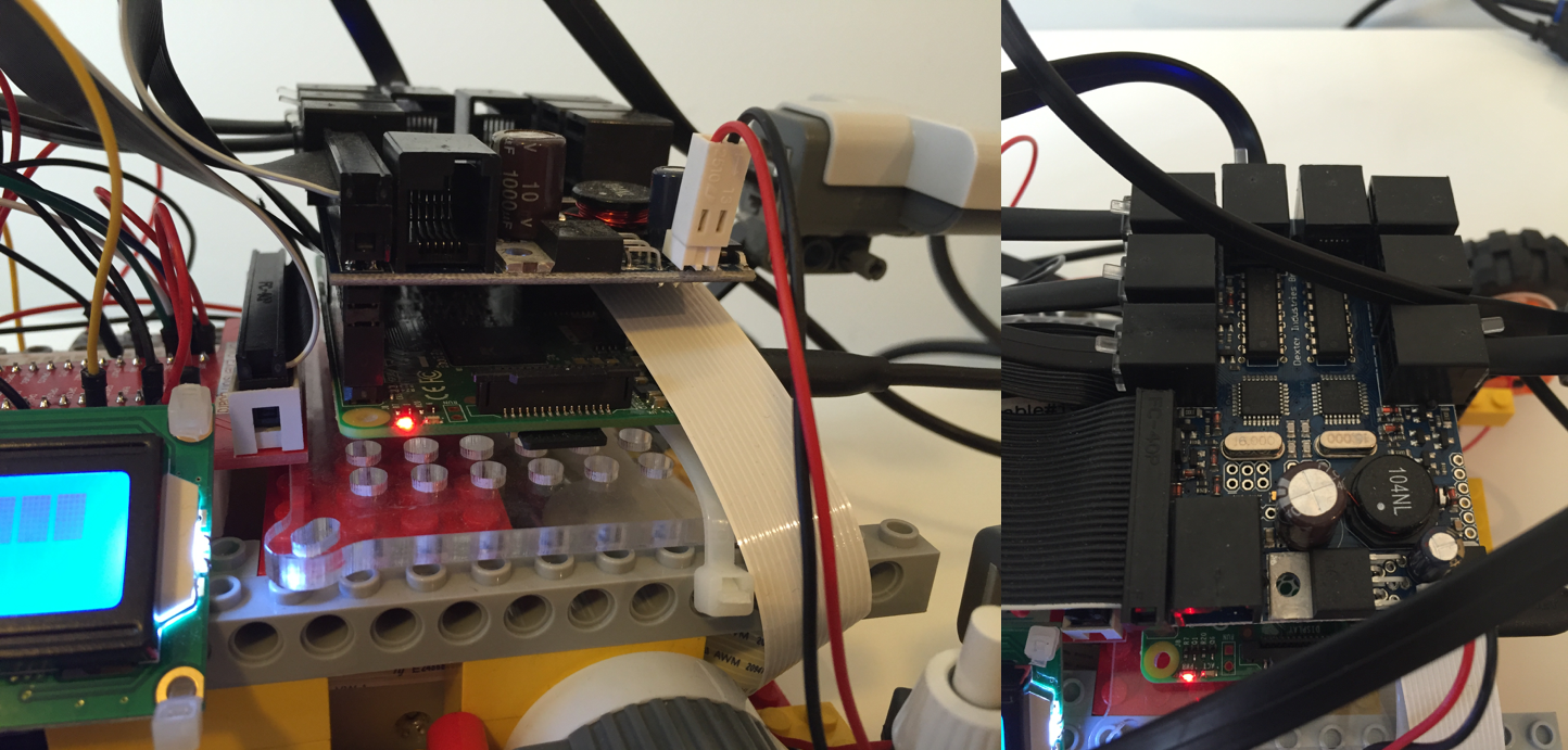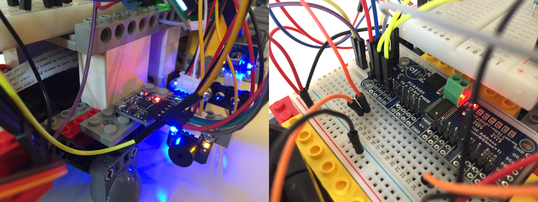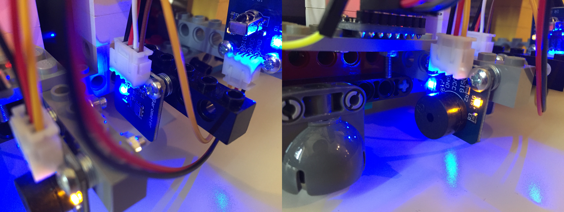 To facilitate the assemblies, we decided to mount two breadboard directly on the robot.