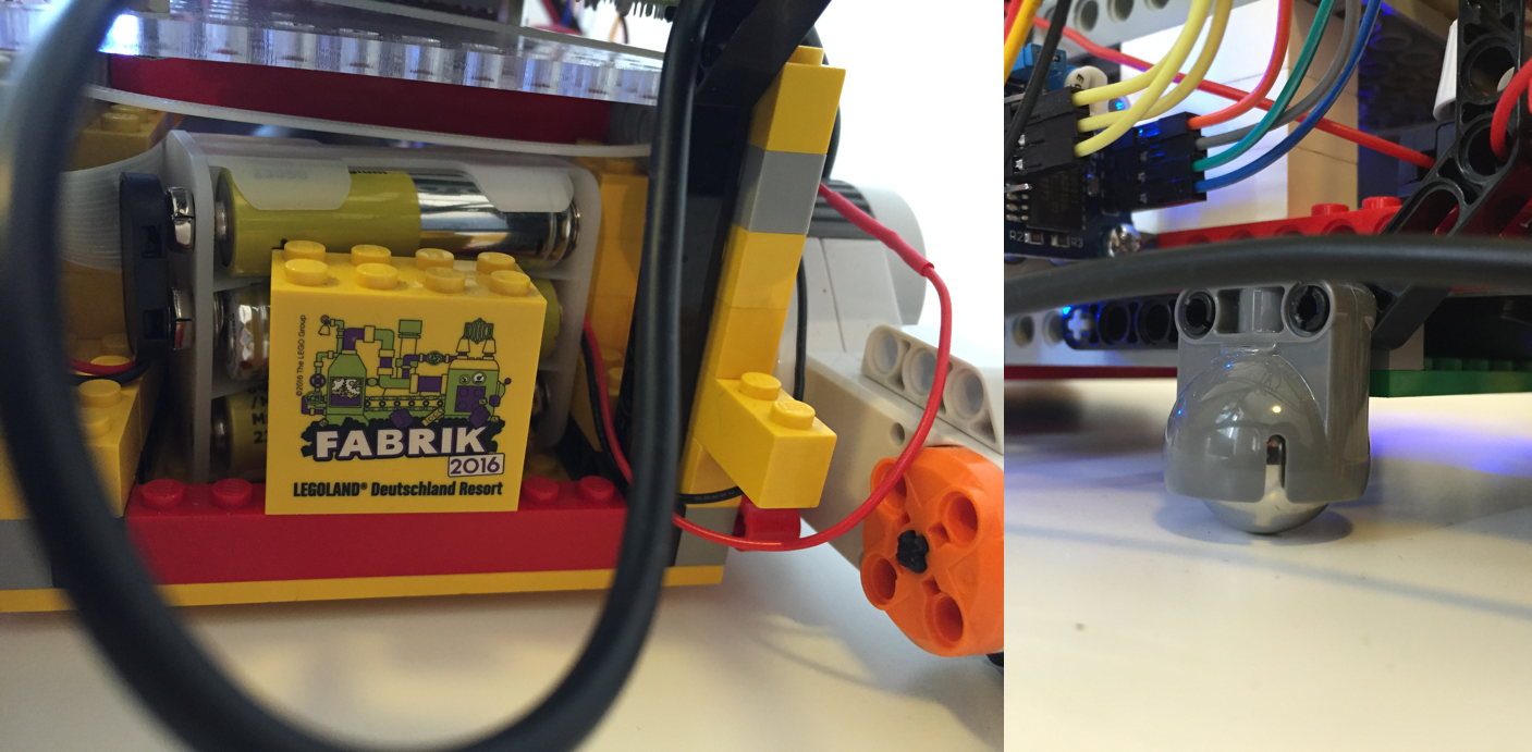 The structure of the robot is only made of LEGO building blocks. We just use some screws with nuts and a few colsons to fix the additional components to LEGO Technic building blocks.